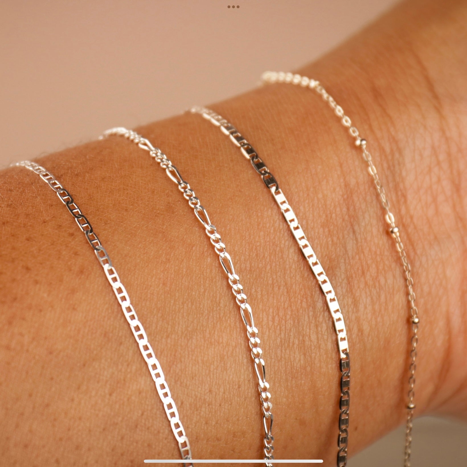 Perrmanent jewelry by OLANTI is offered in solid gold, gold filled and sterling silver. Please reach out directly for current pricing and availability.